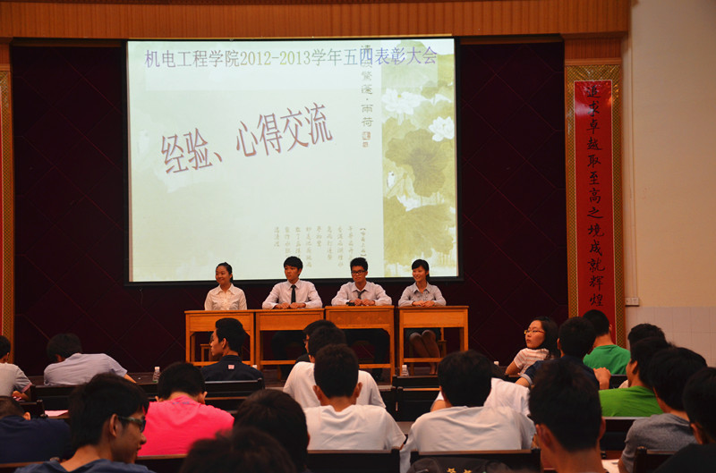 为纪念五四运动,弘扬五四精神,表彰先进,广东白云学院机电工程学院于2013年5月16日晚七点在儒学堂隆重举行了五四青年表彰大会,对在2012-2013年度表现优秀的团员、团干、团小组等进行表彰,机电工程学院的部分领导和老师出席了本次大会。