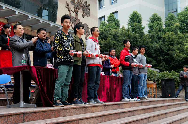 为检验我校学生义务消防员培训的效果,表彰十一月份“文明宿舍”创建成果,由学生工作部、保卫处、校学生会生活部联合举办了消防演练比赛和11月份“文明宿舍”表彰活动,活动于2012年12月11日下午在学校体育馆东侧举行。