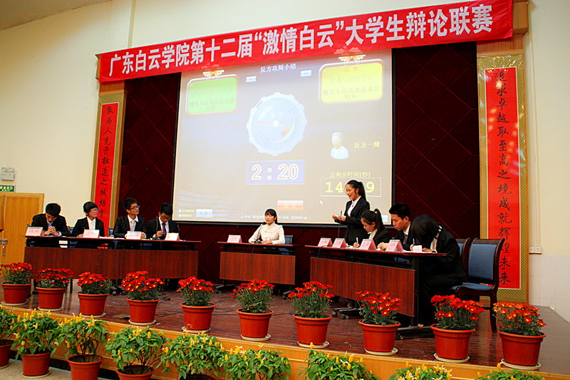 为营造良好的学术氛围,丰富学生的课余生活,由共青团广东白云学院委员会主办,校学习部及各二级学院学习部协办的第十二届“激情白云”大学生辩论联赛经过一个多月的角逐,最终在12月13日晚在学术报告厅举办冠军赛。副校长侯立兵、校团委书记陈峰、学生处副处长李林、岳增玲、人事处处长洪强、基础教学部主任张绪平等出席了本场辩论赛。