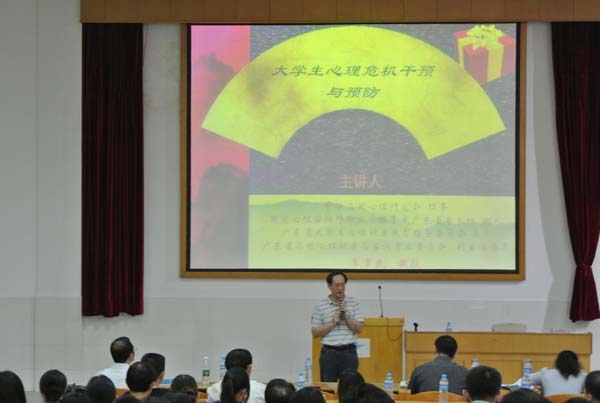 每年的春夏之交是心理危机高发的时期,我省其他高校近期连续发生多起大学生心理危机事件,也进一步凸显出高校心理健康工作和心理危机干预工作的紧迫性。根据上级文件指示精神和我校实际工作需要,4月 12日下午,由学生处心理健康教育中心邀请了广州医学院李幸民教授在至善楼312,为我校师生进行了一场大学生心理危机干预专题培训。培训由学生处李林副处长主持。当天参加培训的人员有各学院党总支书记、辅导员及学生处、宿舍生活指导老师、校、院健心部干事等200余人。