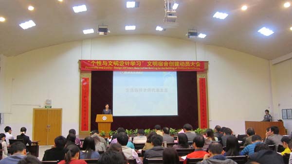 三月阳光明媚,春意盎然,整个校园充满了生机与活力。二十六日下午四点“文明与个性—设计学习”文明宿舍创建活动动员大会在儒学堂隆重举行,学校党委书记刘剑锋、学生处处长陈峰、副处长李 林、岳增玲、德育研究所所长刘志新、各二级学院党总支书记、 全体学生工作者及学生代表出席了本次动员大会。会议由学生处副处长岳增玲主持。