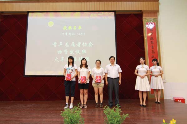会议在雄壮的国歌中拉开帷幕,团委副书记张泽彬总结了2011年新生接待工作。据悉,本次迎新志愿工作在学校领导高度重视、各部门大力支持下,广大同学积极参与,共有450名志愿者参与迎新工作。今年迎新工作具有新的特点,制定方案最早、准备最充分、组织动员最及时、学生参与人数最多,服务效果最好,受到2011级新生和家长的好评与肯定。学生处副处长李林宣读了表彰决定,刘湖连等95名同学荣获“优秀志愿者”荣誉称号;青年志愿者协会等3个团队荣获“优秀志愿者团队”荣誉称号。优秀志愿者代表庄伟欢、黄丽思分别上台分享自己迎新过程的体会与感受,充分展现我校学子乐于奉献,积极向上的精神风貌。