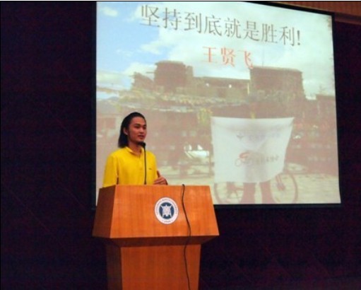 会前由勤工部部长对上学期勤工部的工作进行总结。感谢学校领导对勤工部工作的大力支持,对家庭经济困难学生的贴心关怀,使这些学生在学校的关心和帮助下不但解决了生活上遇到的困难,而且在老师的教育指导下,自身能力也得到了锻炼和提高,并决心在今后的工作中努力学习,积极完成工作任务,以优异的学习成绩回报学校。 接着08国际贸易班王贤飞同学讲述了他在暑假与两位同学结伴从云南大理骑自行车2000公里至拉萨的壮举,他以风趣,幽默的语言,形象、生动的视频和图片让大家更直观地了解到他在整个“滇藏之旅”遇到的种种困难,以及如何克服困难的精神,同学们听到后都深表钦佩。他的那一句“世界很大,人活着就应该到处走走”引起大家的共鸣。此外,谭舜芳和黄秋萍同学也给大家分享了她们的暑假实践经历。同学们被她们不怕吃苦,克服困难,坚持到底的精神所折服,为她们在社会实践中的体会和经验所敬佩。最后学生处李林副处长对会议进行了总结,他充分肯定了上台发言的同学的表现,并激励同学们应该多利用寒暑假时间进行社会实践,将理论与实践结合起来,巩固专业知识,锻炼自身能力,提高综合素质。